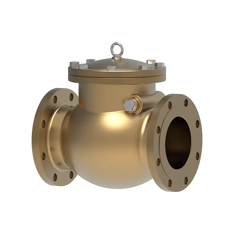 Висококачественият бронзов люлеещ клапан на Waits Vail е клапан, който разчита на потока на средата за отваряне и затваряне. Този клапан диск се върти около вала на щифта, за да се отвори и затвори автоматично, когато няма обратното налягане. Той има проста структура, малка устойчивост на потока и гладко отваряне и затваряне. Бронзов люлеещ се клапан: Този продукт има компактна и разумна структура, надеждно уплътняване, стабилна производителност и има характеристики на малки размери, леко тегло и широк диапазон от приложения. Подходящ е за морска вода, прясна вода, канализация и някои слабо корозивни химични среди, където се изисква устойчивост на корозия.