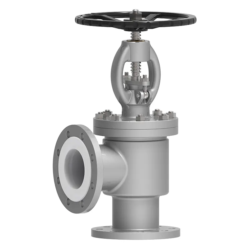 Висококачественият ъгъл на PTFE на ъгъла на PTFE ъгъл на PTFE е облицован с PTFE глобус клапан със специална структура. Нашето тяло на клапана приема дизайн на десен ъгъл от 90 °, а входните и изходните посоки на медиите се пресичат вертикално. Тази структура съчетава устойчивостта на корозия на PTFE облицовката и характеристиките на потока на ъгъла, което го прави подходящ за силно корозивни условия, при които посоката на потока на средата трябва да бъде променена или пространството е ограничено.