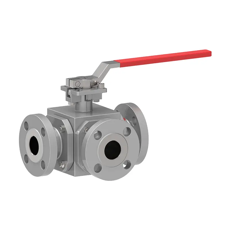 Трипосочният клапан с трипосочен клапан с клапани Waits има три порта, а каналите на топката са проектирани за конкретни връзки. Общите конфигурации включват t тип и l тип. Трипонният топлен клапан T тип интегрира три взаимосвързани канала в топката, което позволява превключване и разпределение на течността в три посоки; Докато точният клапан L-тип съдържа само два вертикални канала за пренасочване на потока на течността между два определени порта. Клапанът работи, като върти топката, така че вътрешните му канали да се подравняват със съответните портове, което позволява течността да преминава или блокира потока на течността, когато се върти до определен ъгъл. Например, в клапан тип t, регулирането на позицията на топката може да персонализира комбинацията от порт, а персонализираните клапани могат да отговарят на различни потоци на процеса.